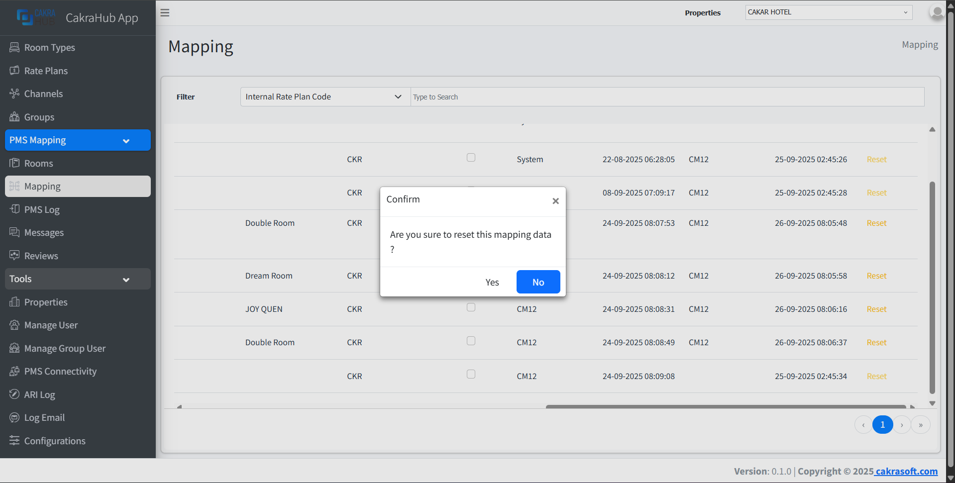 Every data created in the Rooms menu will automatically appear in the Mapping menu. The mapping process is crucial to ensure CM and PMS data are connected and synchronized.