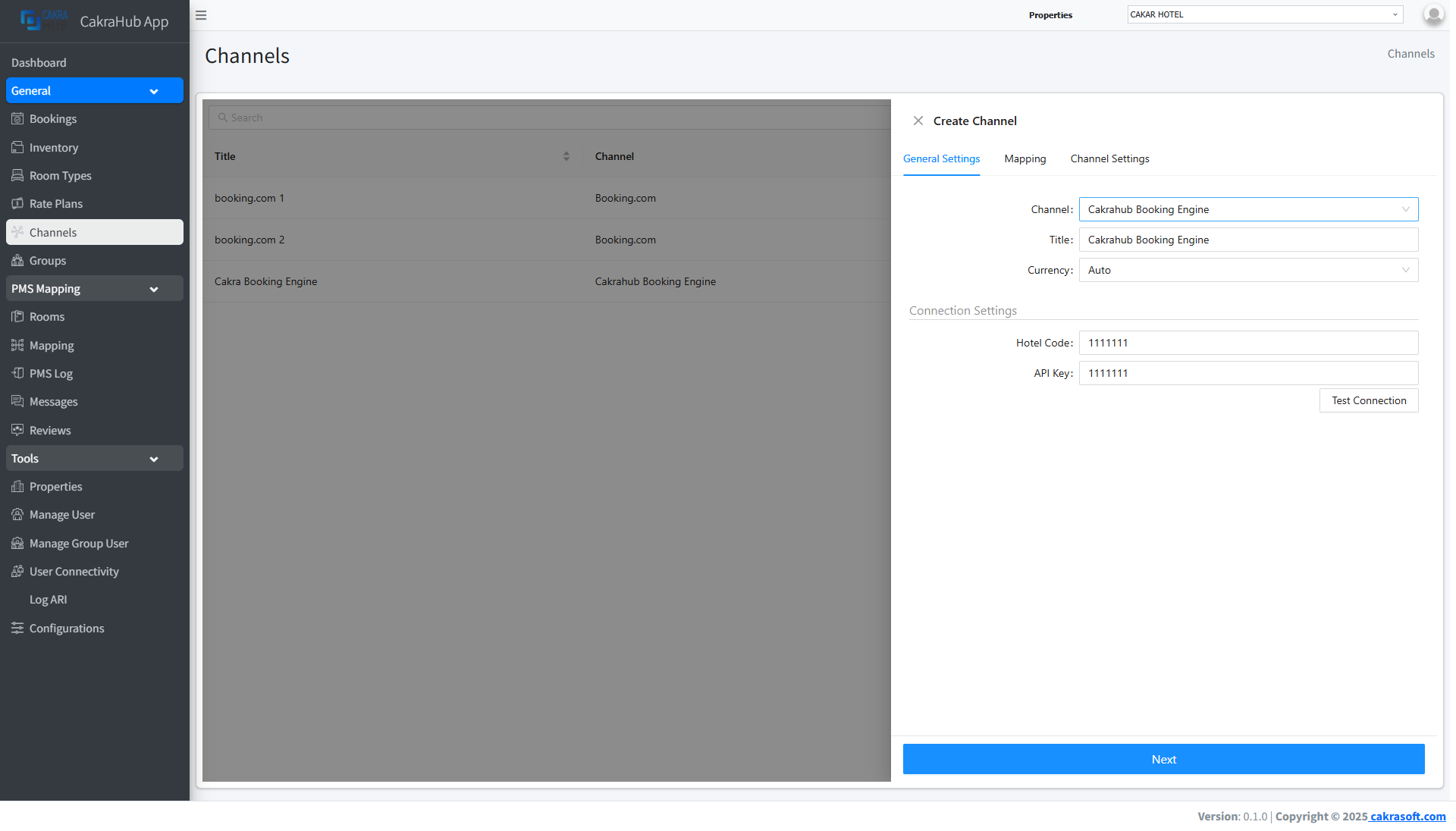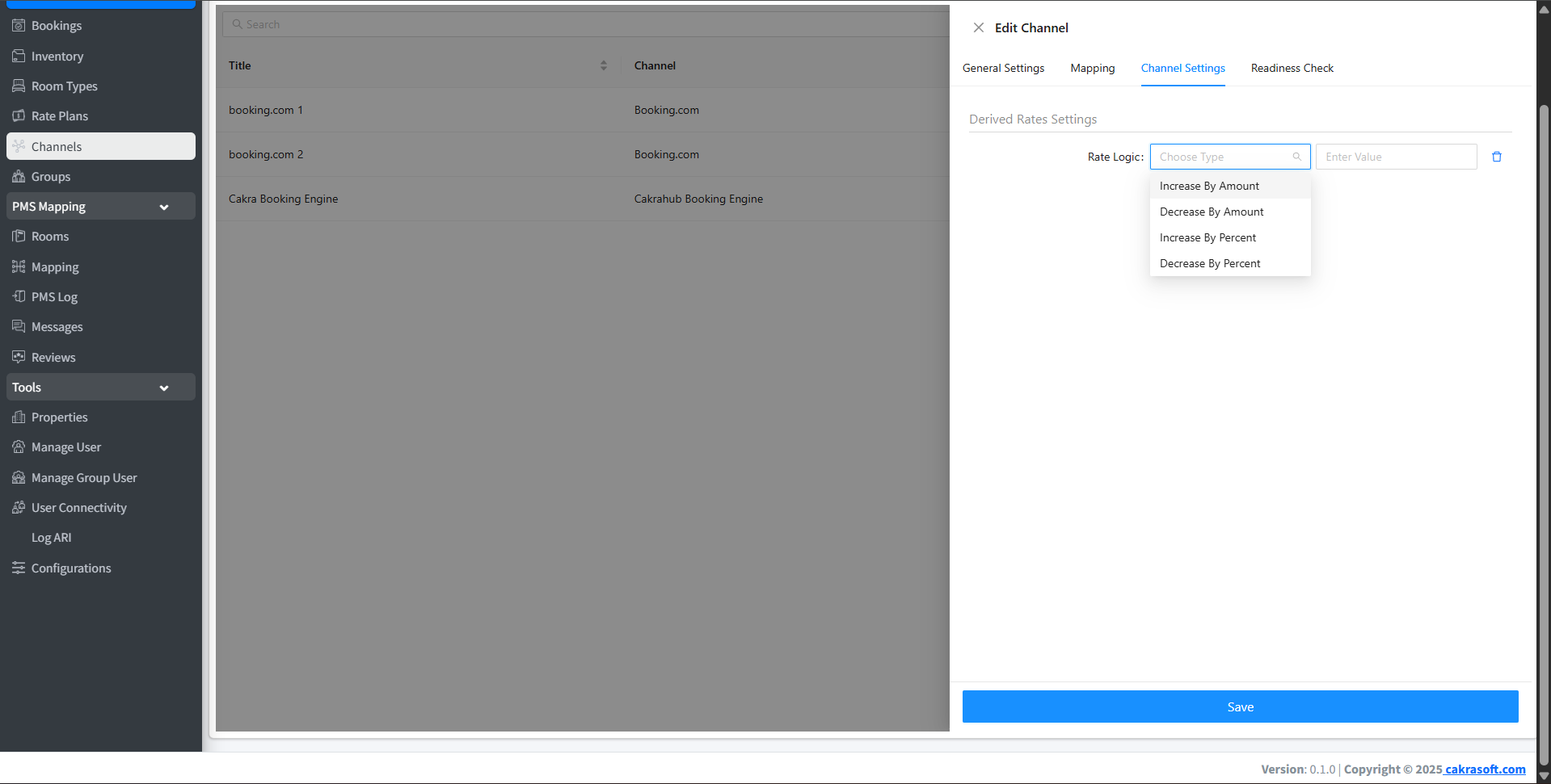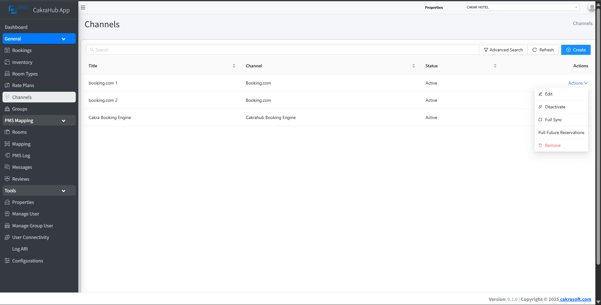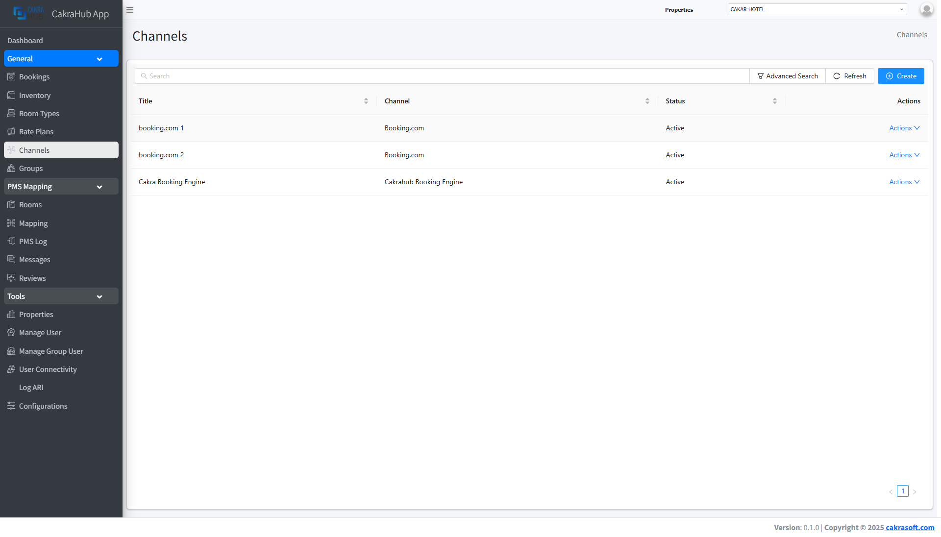1. Channel: OTA options available in cakrahub.